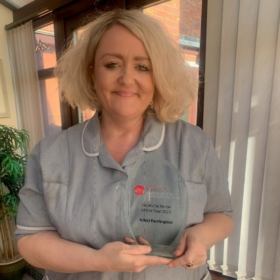 as our Neonatal Nurse of the Year, 2023. Nikki has worked tirelessly to promote multidisciplinary and multi-agency working to provide all families with optimal bereavement and palliative care. The impact Nikki has made through supporting colleagues to deliver care to these babies and families in clear.
